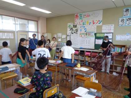 静岡県の漁業、沼津の漁業について、地元の漁業従事者を招いて水産教室を行いました。様々な漁法についての実際の網や模型を使っての説明は、漁をするための工夫を学ぶことができました。社会の時間に学んだことがより実感として分かり、漁業についての興味関心を高めることとなりました。
