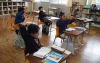 最後の1枚は、英語の時間に作ったハロウィーンのお面をつけたところです。
