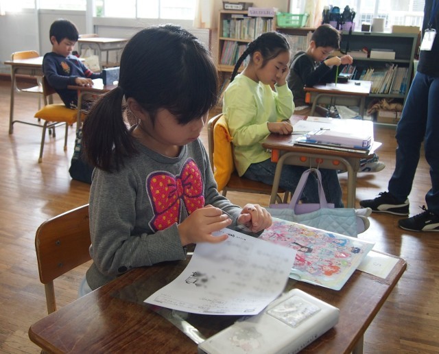 1年生の国語を見に行くと、片仮名プリントに取り組んでいました。