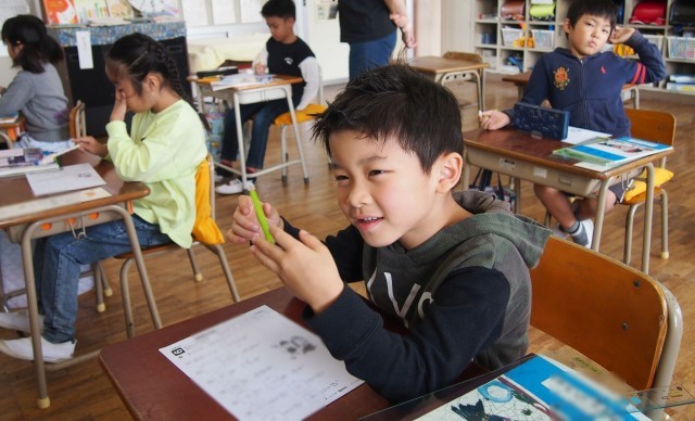 1年生は、自分の考えを黒板の前でみんなに説明することが大好きです。