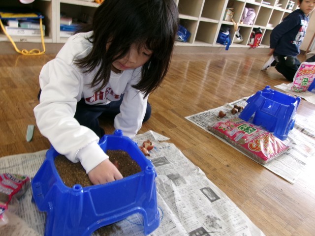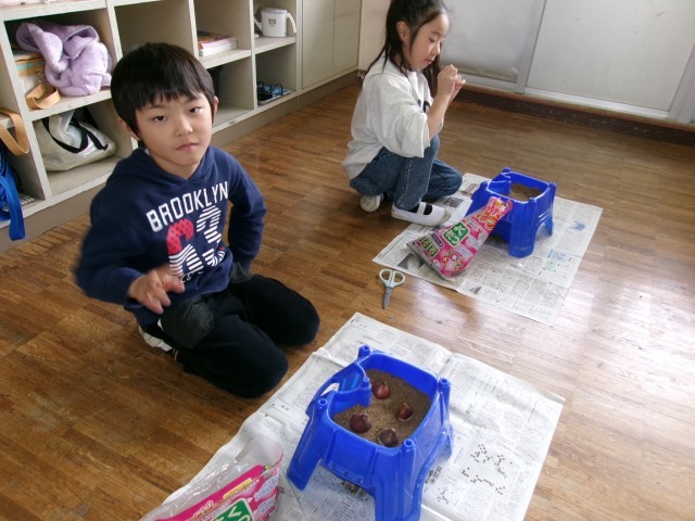 1・2年生は、チューリップやラナンキュラスの球根を植えました。
