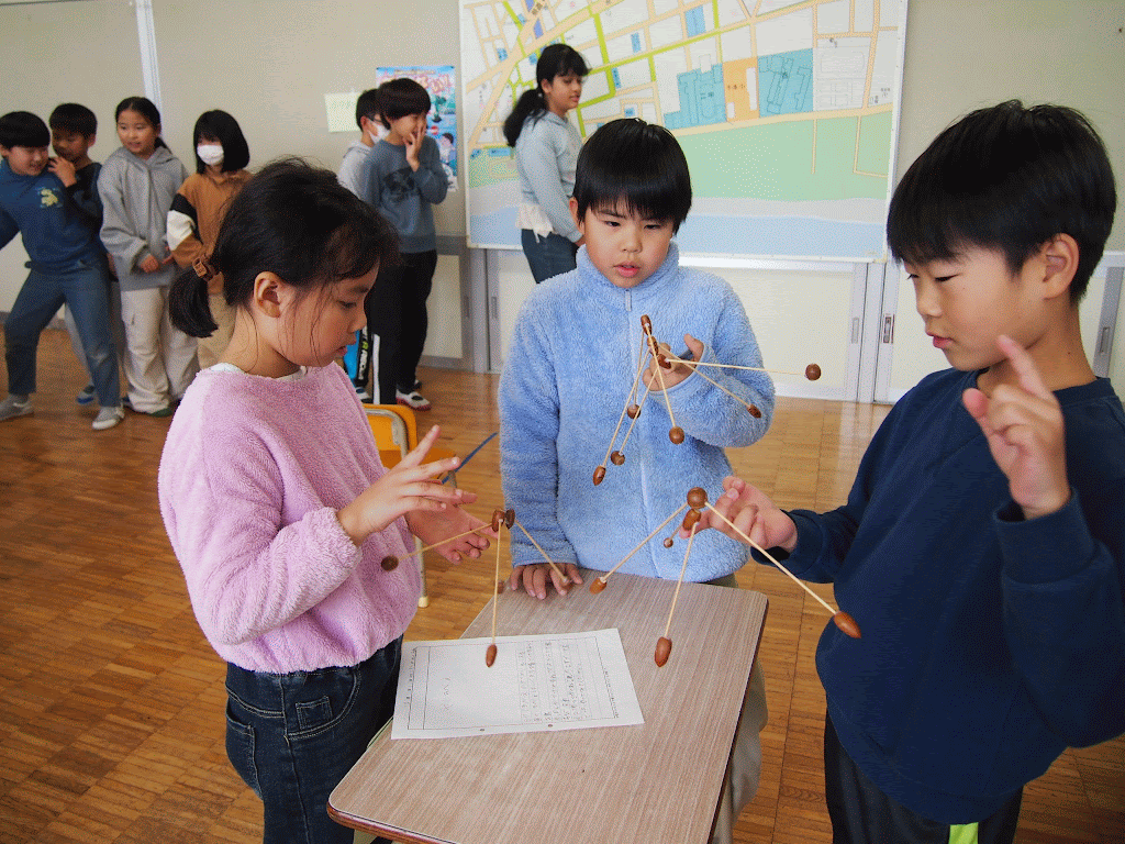 やじろべえやこま、けん玉や迷路など、子供たちは早く作りたくて仕方がないようです。