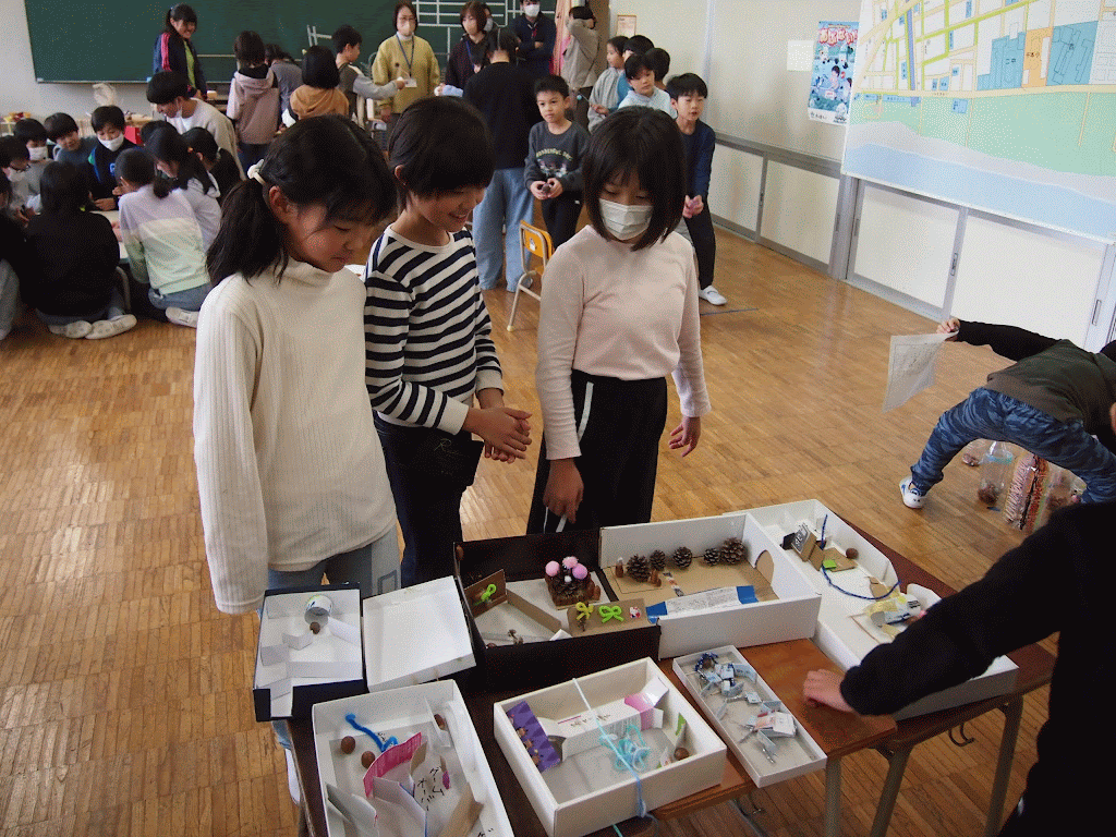 作った迷路で遊んだり、うまくできたことを友達と紹介し合ったり、最後の仕上げをしたり、一人一人夢中になって楽しみました。