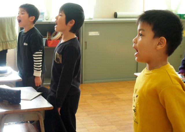 元気よく「いつだって」や「沼津市歌」を歌いました。難しい歌詞が出てきますが、上手に歌うことができていました。