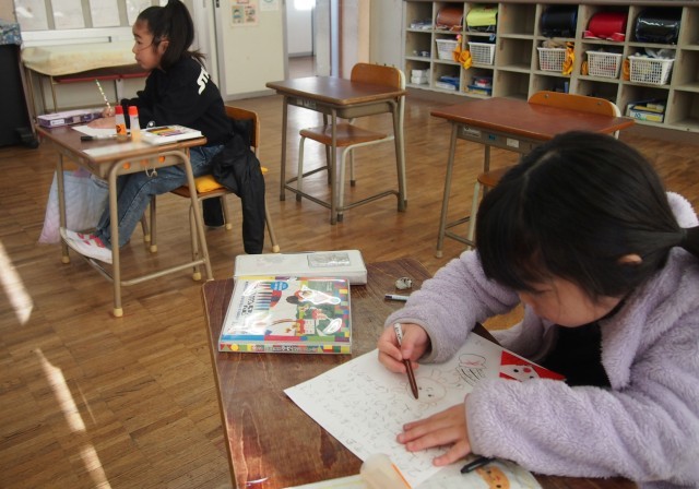 昼休みに全校に呼び掛けたところ、全ての子供たちが多目的室に集まりました。
