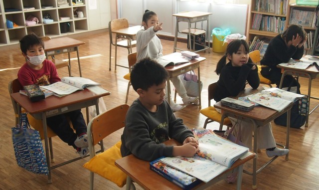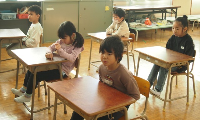 昼休みに全校に呼び掛けたところ、全ての子供たちが多目的室に集まりました。
