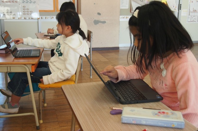 終わった子は、学習発表会に向けてスライドづくりを進めました。