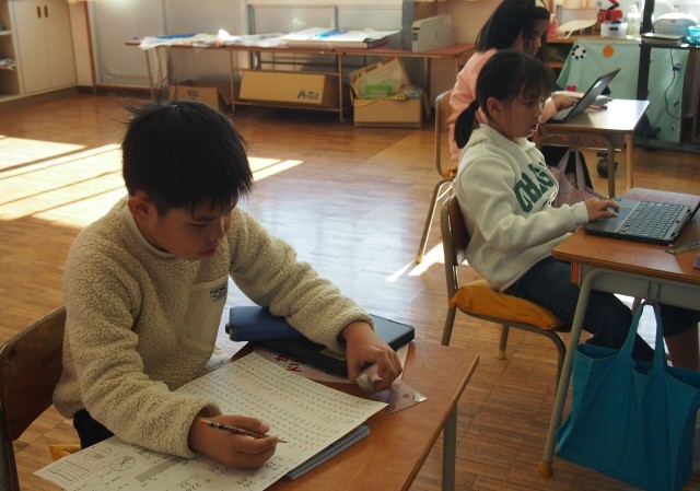 お休みをしていた子は、たまったテストに取り組んでいました。