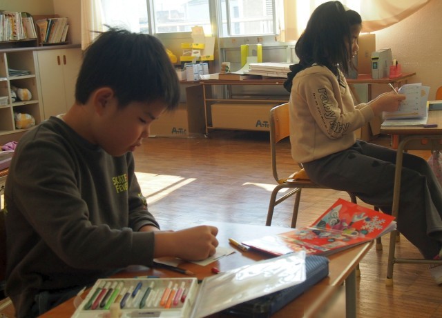 漢字ドリルで漢字の練習をし、残りの時間はお世話になったいろいろな人への手紙を書きました。