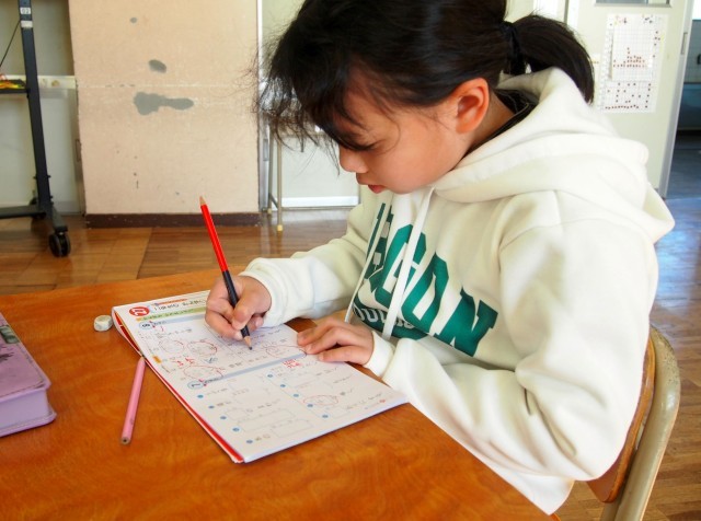 昨日お休みしていた子は、漢字と計算のテストに取り組みました。