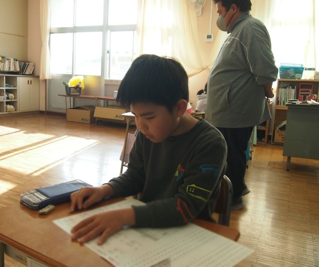 お休みをしていた子は、たまったテストに取り組んでいました。