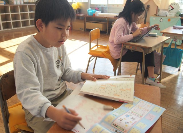 2年生の算数の様子です。今日は1人欠席なので、2人だけの授業です。