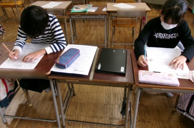 週末の6時間目、「秋に習う漢字」のテストをしました。