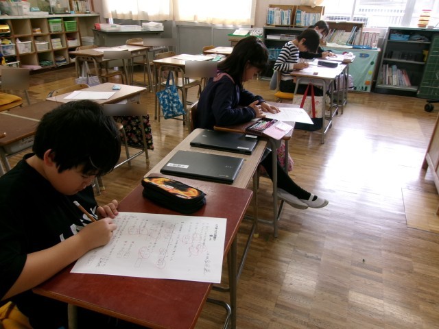 3年生は国語で詩の学習をしていました。先生の「詩のまとまりを『連』と言います。」という言葉に笑顔になる子供たちでした。