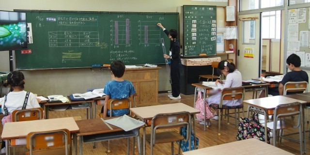 3年生は国語で詩の学習をしていました。先生の「詩のまとまりを『連』と言います。」という言葉に笑顔になる子供たちでした。