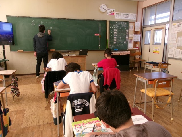 今日は、市内の2年目の中学校の先生が千本小に来て勉強をする研修会があり、その中心授業でした。