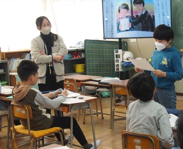 4年生の道徳「学校のれきし」の様子です。