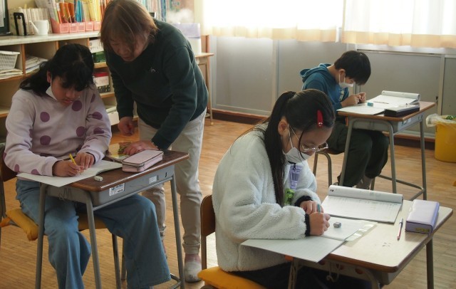 4年生の国語の様子です。漢字のテスト中でした。どの子も真剣に取り組んでいました。