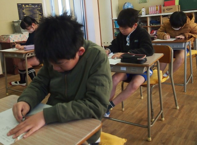 4年生の国語の様子です。漢字のテスト中でした。どの子も真剣に取り組んでいました。