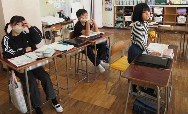 5年生は、家庭科で「だし」の勉強をしていました。教室は煮干しの香りがしていました。