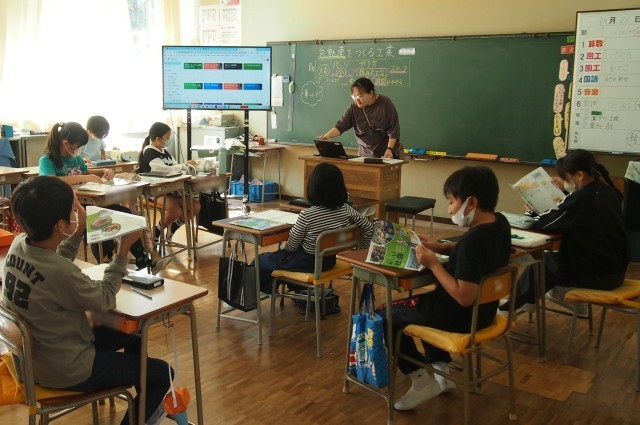 これまでの日本の産業について学習してきた5年生は、この後、機械工業、特に輸送用機械(自動車)工業について学びます。