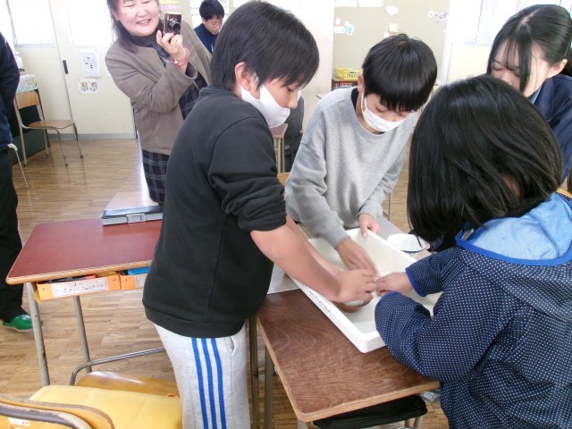 5年生は、家庭科で「だし」の勉強をしていました。教室は煮干しの香りがしていました。