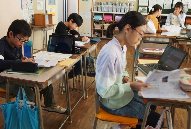 教材文「「永遠のごみ」プラスチック」の各段落の要点を確認しながら丁寧に読み進めています。