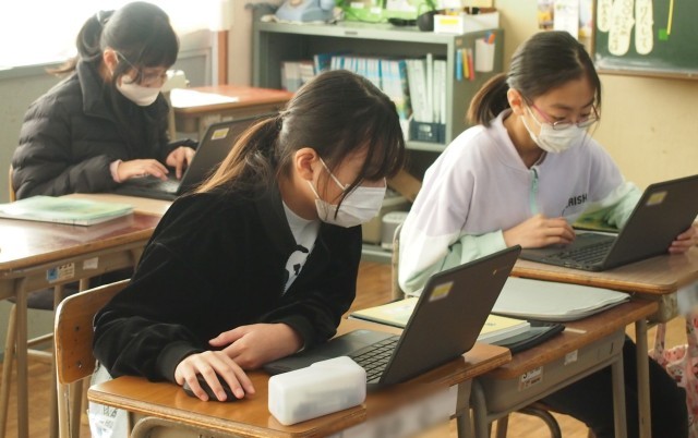 Chromegookを使って、外国にいるネイティブの講師の先生と画面越しにリアルタイムで会話を楽しみました。