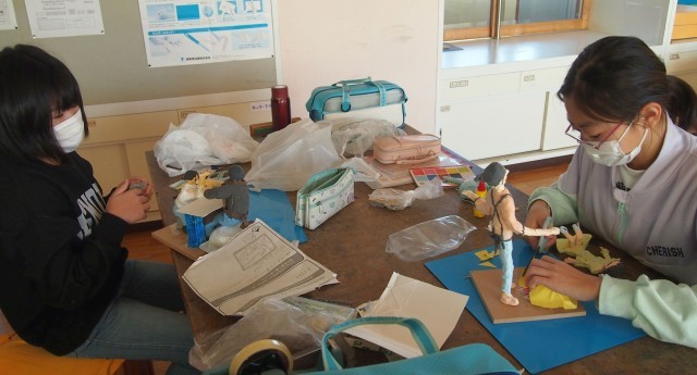 今日は、様子が表れるようにするにはどうしたらよいか考えながら細かい部分まで丁寧にこだわりをもって造形活動に取り組みました。
