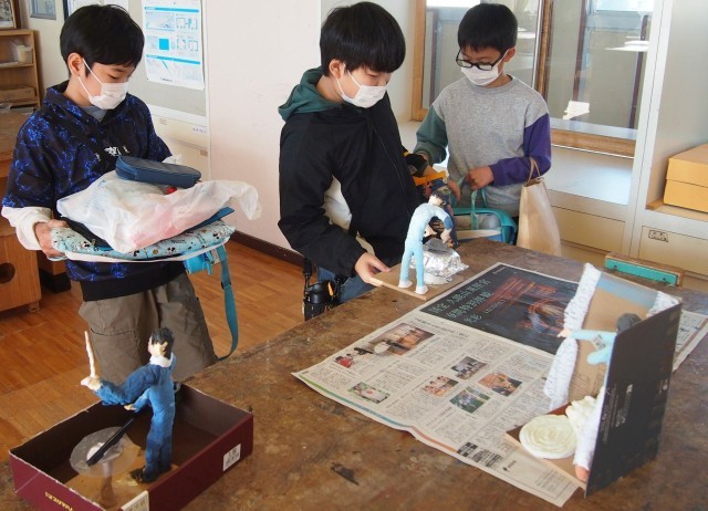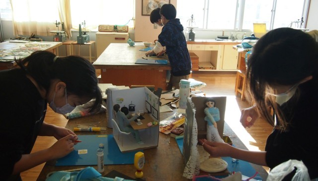 今日は、様子が表れるようにするにはどうしたらよいか考えながら細かい部分まで丁寧にこだわりをもって造形活動に取り組みました。