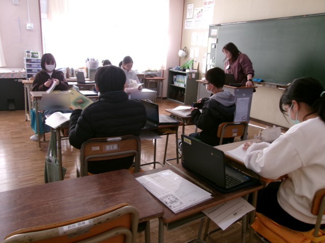 「心に残った、この一文」の発表も今日で全員終わり、残りの時間に、3学期の学習内容を教科書を見ながら確認しました。