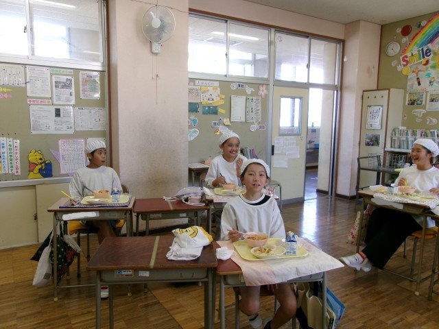 昨年度2年生と3年生は一緒に給食を食べていたので、久しぶりに一緒に食べることになり、とても喜んでいました。
