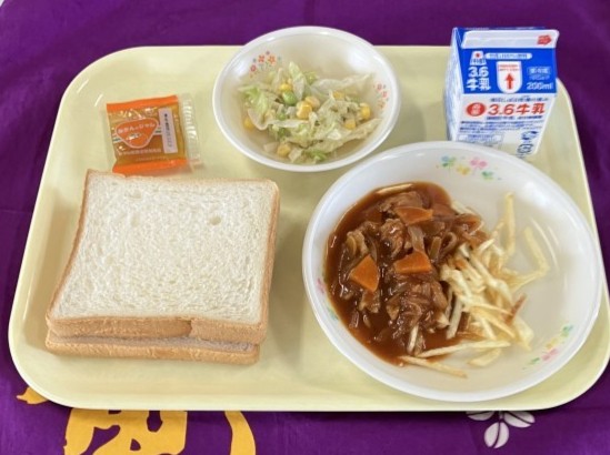 今日の給食の献立はみんなが大好きなカレー南蛮です。