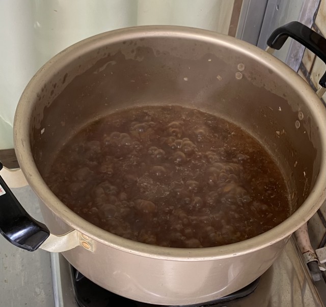 6枚目・・・豚肉とにんじんと椎茸を調味料で煮ています。