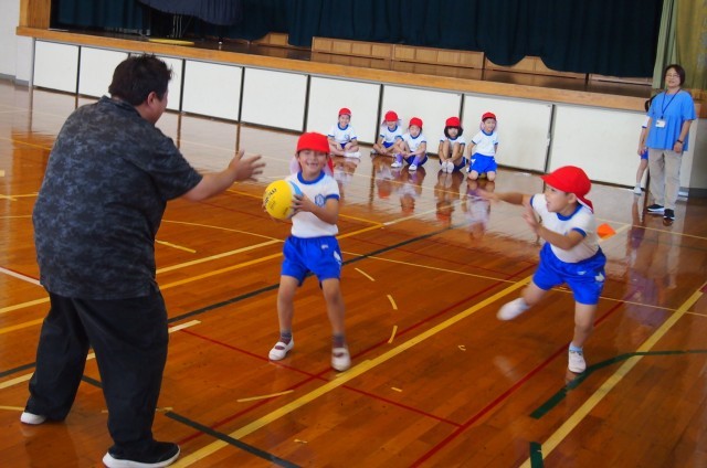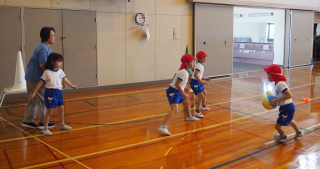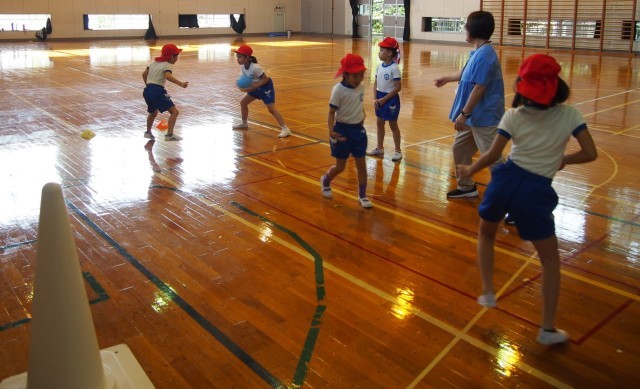 学年が上がると、ポートボールやバスケットボールなどのゴール型のゲームに発展していく運動遊びです。