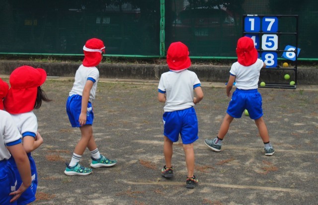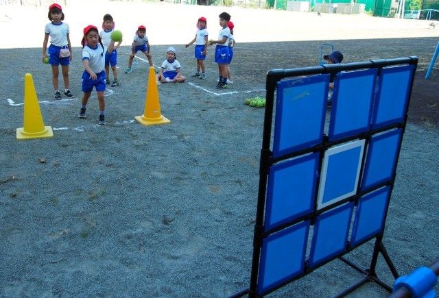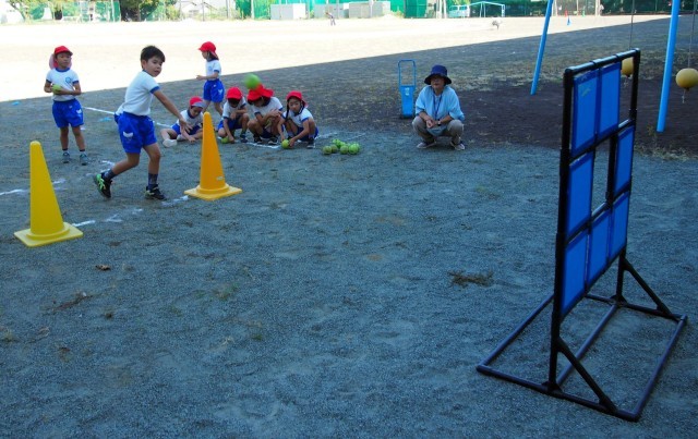 運動場で的当てのゲームをしました。
