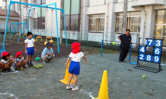 1・2年生の体育「的当てゲーム」の様子です。