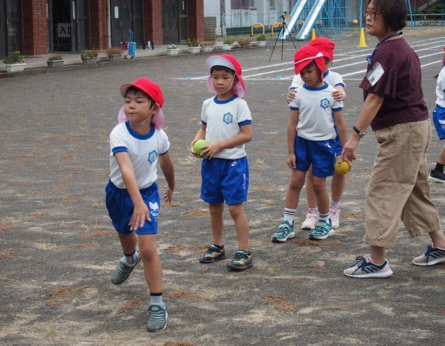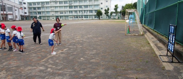 ティーベース用の柔らかいボールですが、1・2年生の手には大きいようで、しっかりと握って力を込めて投げることが難しそうでしたが、繰り返し投げていると次第にこつをつかむようで、記録を伸ばしていきました。