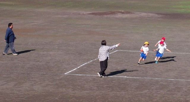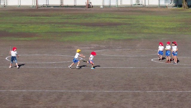 今日は、赤白の2チームに分かれて、追いかけっこゲームと陣地取りゲームをしました。