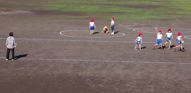 ティーベース用の柔らかいボールですが、1・2年生の手には大きいようで、しっかりと握って力を込めて投げることが難しそうでしたが、繰り返し投げていると次第にこつをつかむようで、記録を伸ばしていきました。