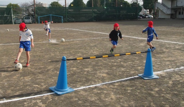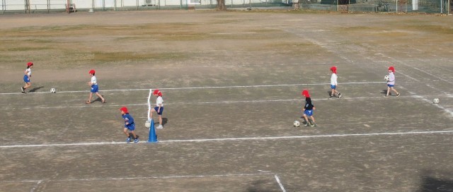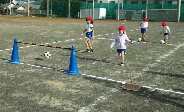 なわとびの練習をした後、ボール蹴りに挑戦しました。