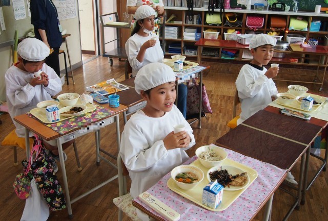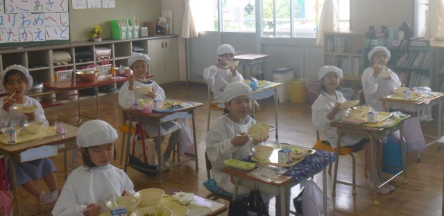 今日は音楽で「茶つみ」を勉強し、給食では、新茶で炊いた茶飯をいただきました。