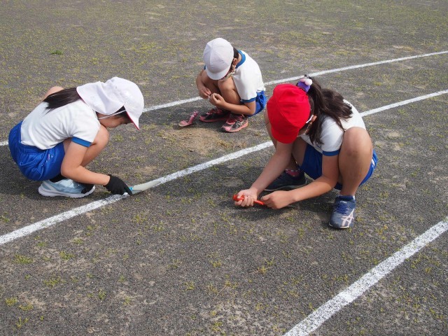 あさっての運動会に向けて、今朝は全校種目の練習をしました。
