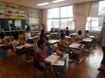 今日の授業は、夏休みに向けての学活でした。通知表を受け取ったり、夏休みの生活や宿題の確認をしたりしていました。わくわくした雰囲気が伝わってきました。
