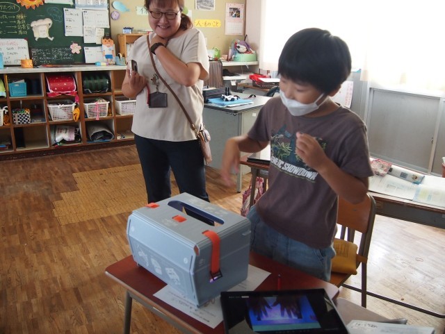 終わった子は、クロームブックを使っての学習です。分からないことがあると、2年生がすぐに教えに来てくれます。
