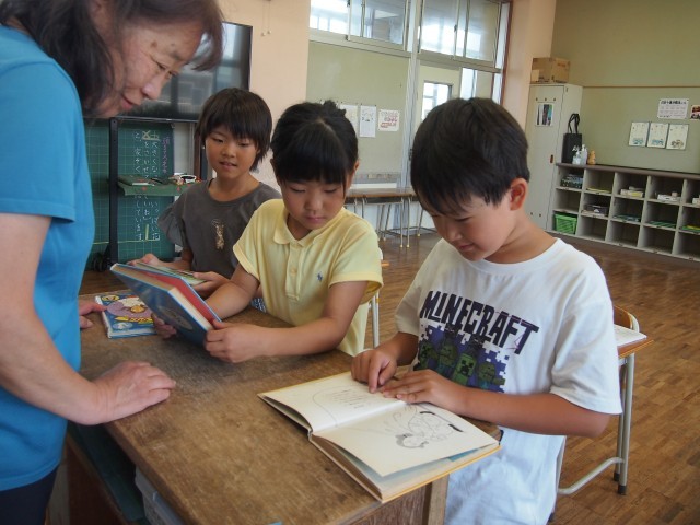 2年生の国語の授業の様子です。クラスの友達に読み聞かせをしたい本を選びました。選んだあとは、練習を頑張りました。