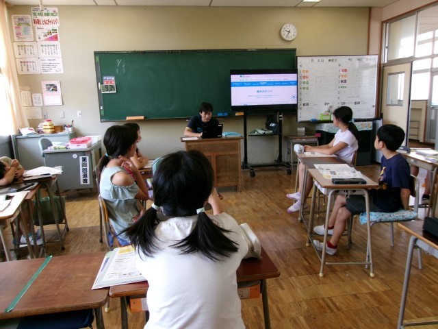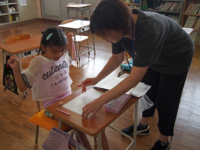 1年生の教室では、夏休みの宿題について説明を聞いていました。
