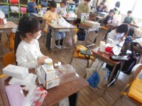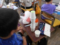 動くおもちゃ作り。みんな工夫して取り組んでいます。
