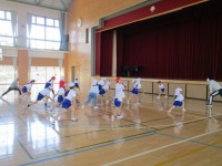 昨日の雨で運動場が使用できないため、体育館で活動しています。準備体操をしてから、...