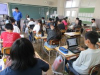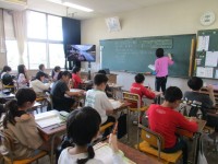 片浜小学校の校歌を学習します。先生が歌い出すと「お姉ちゃんが歌ってる」という声が...
